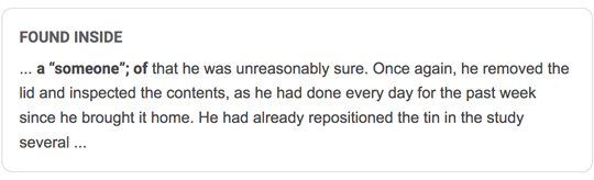 2017 | not a ] ‘something’ but a ‘someone’; of that he was unreasonably sure. Once again, | Ruth Hogan | The Keeper of Lost Things | |