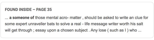 1951 | a someone of those mental acro-matter, should be asked to write an clue for some expert unraveller bats | OCR cross-column confusion, something somewhere at World’s Press News and Advertisers’ Review | ||