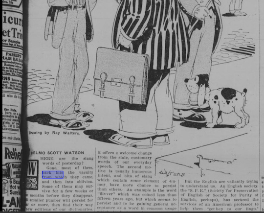 Elmo Scott Watson, “King’s English vs. ‘Slanguage’,” Times-Gazette (Redwood City, San Mateo County; Saturday, January 15, 1927) : 7