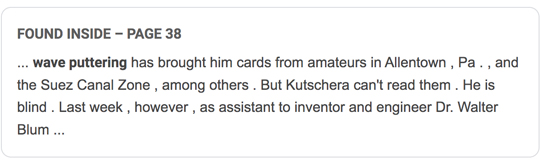 Blum’s invention of a “reading machine” gets one of four brief reports in “Notes on Science,” in The New York Times (August 17, 1952) : link (paywall), from which —