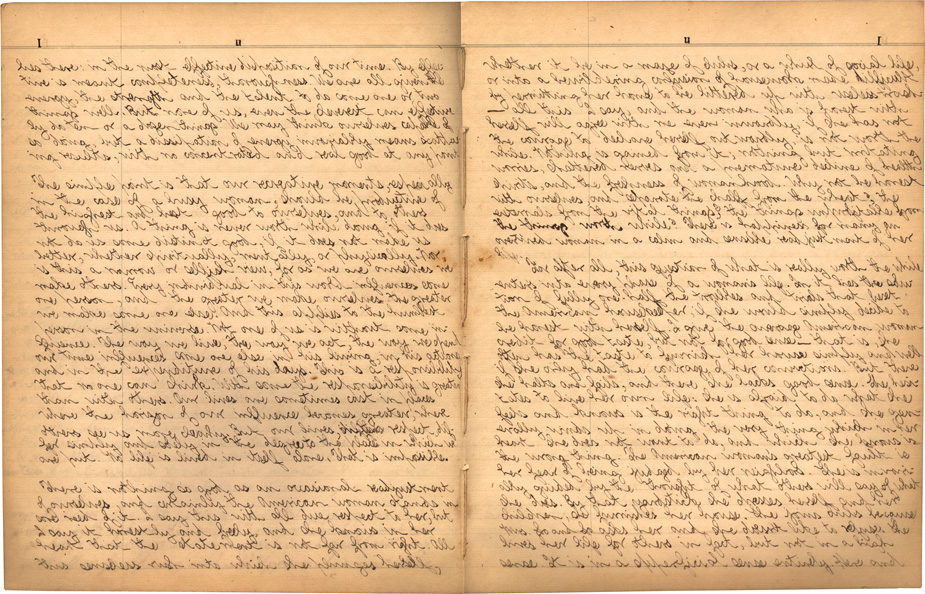 Her poetry is intensive, eliptical, philosophical; the manuscript poetry seems less confident (and even more eliptical) than the published verse. The manuscript verse bears dates and locations: Lansdown, Newport, Isle of Wight (October 2, 1892); Portland (August 31, 1894); Berlin (February 8, 1891).